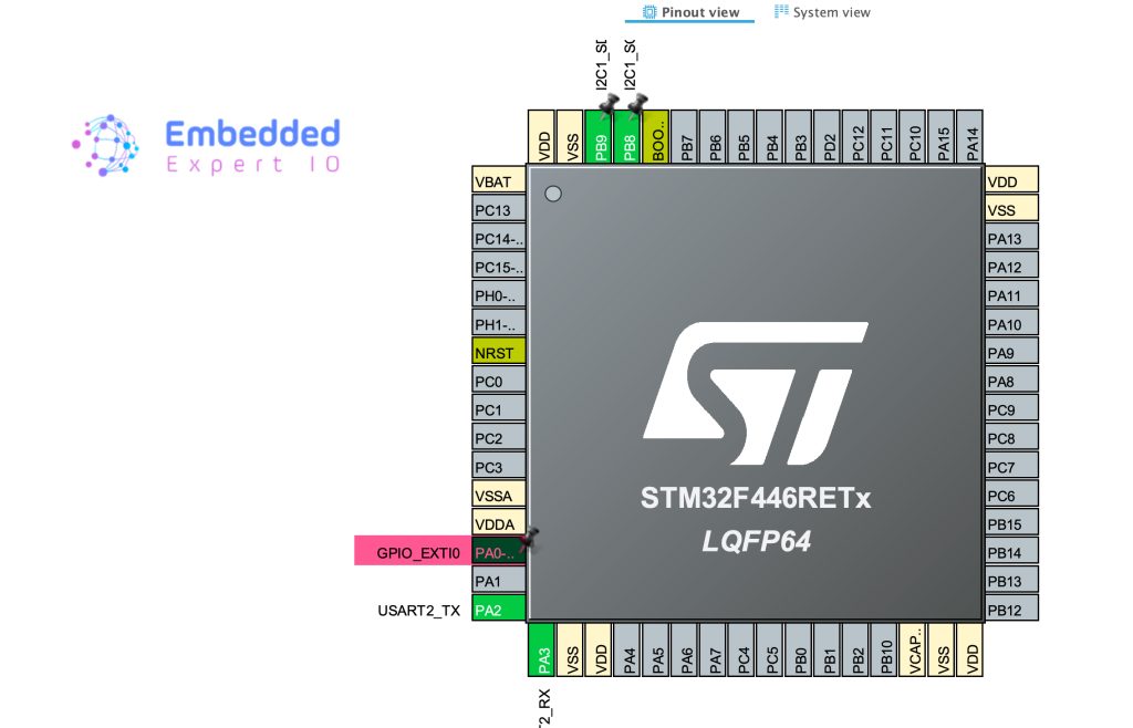 Next, from System Core, NVIC, enable EXTI line 0 interrupt as follows
