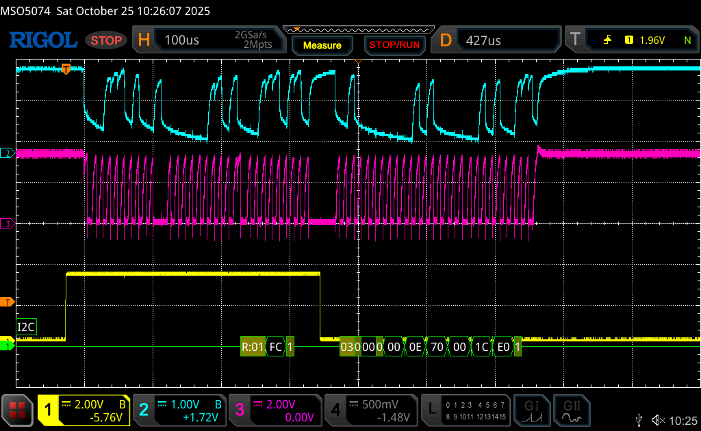 Notice that once the master requests read from a register, the pin goes immediately to low and send the ADC data.