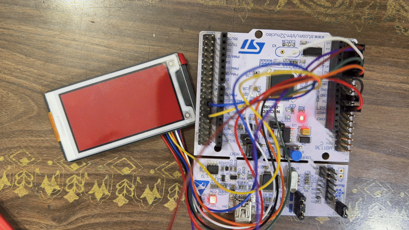 ePaper_Clear(); HAL_Delay(5000); ePaper_Clear_Black(); HAL_Delay(5000); ePaper_Clear_Red(); HAL_Delay(5000);