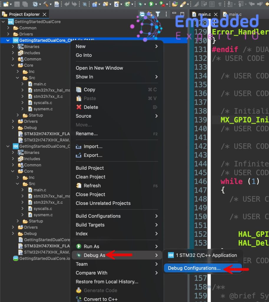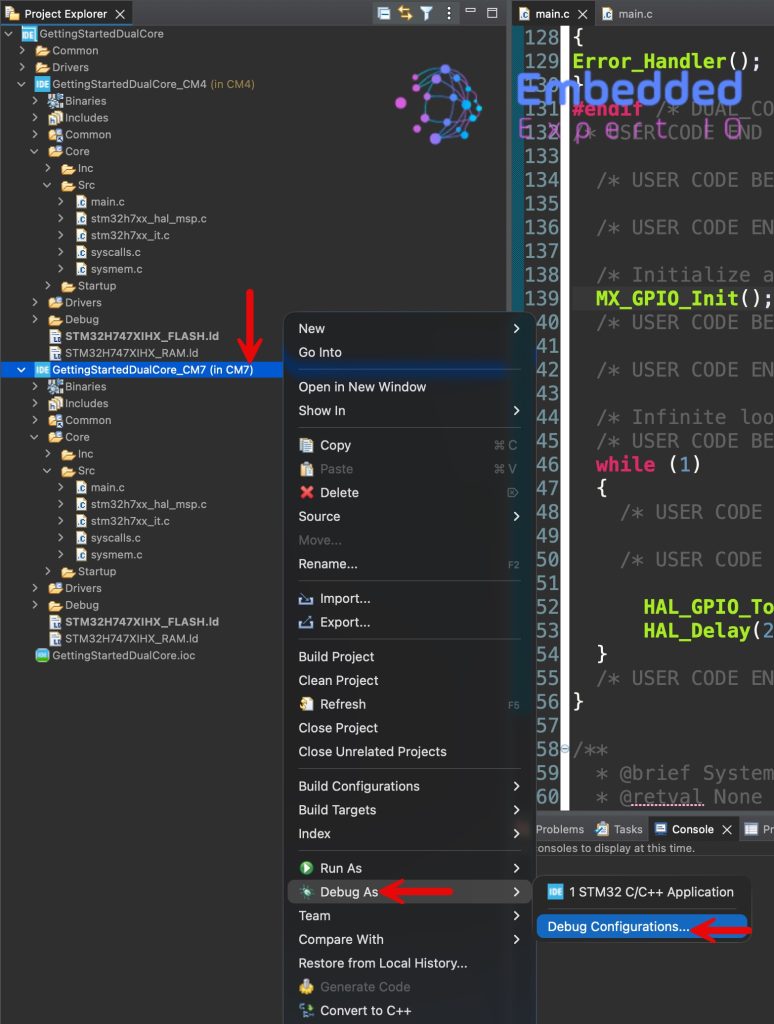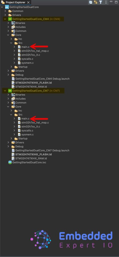 Once the project has been imported, you will notice there is two project, one for CM4 and the other for CM7 as follows: