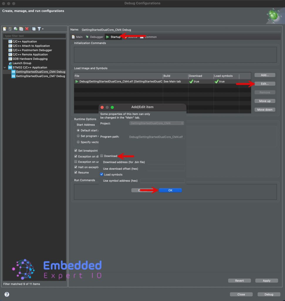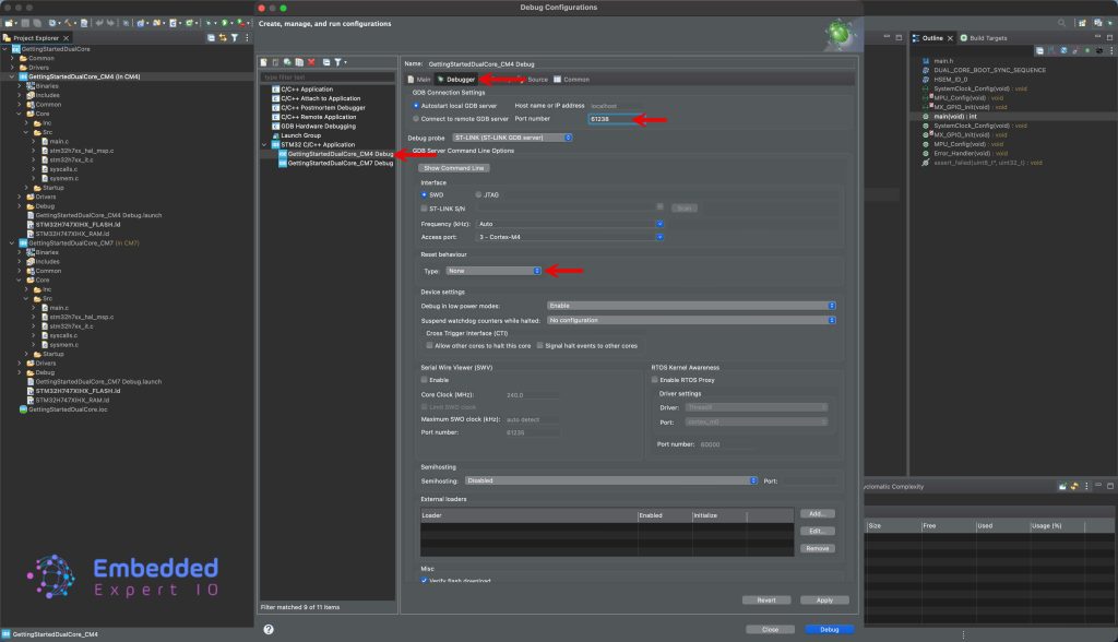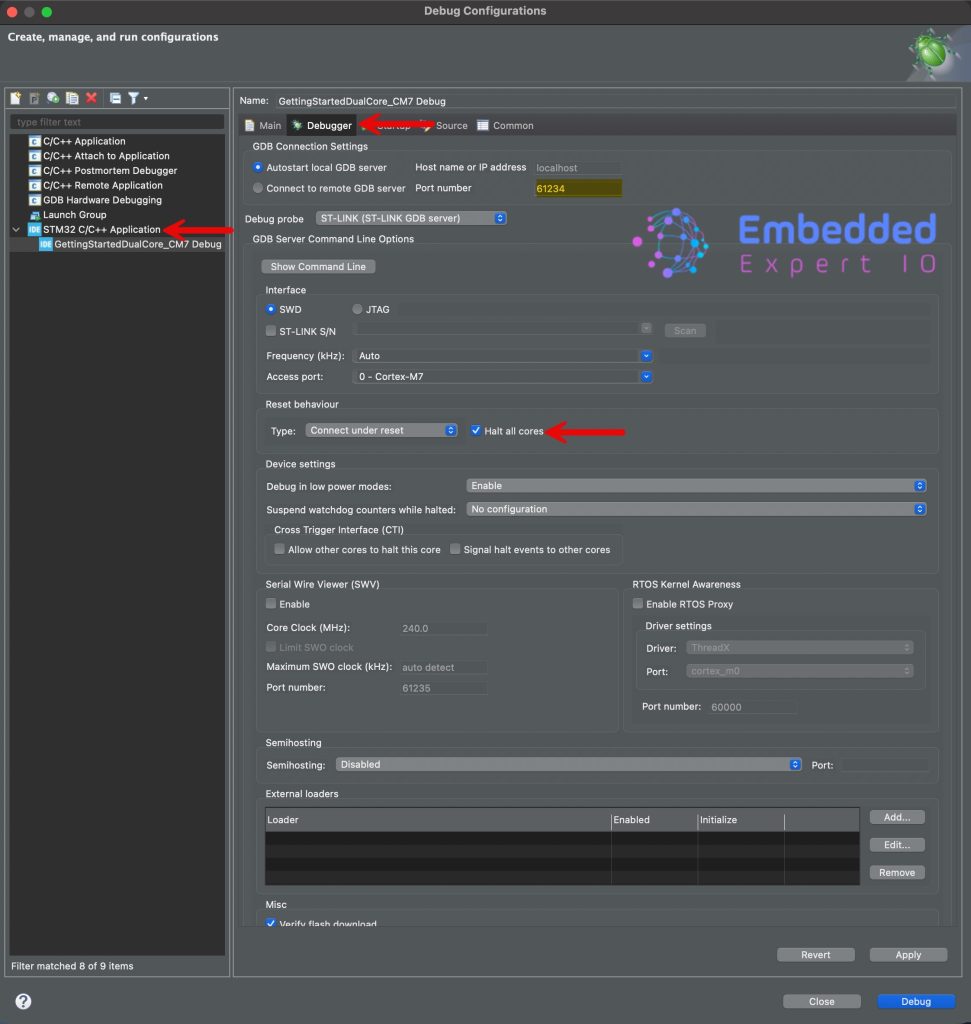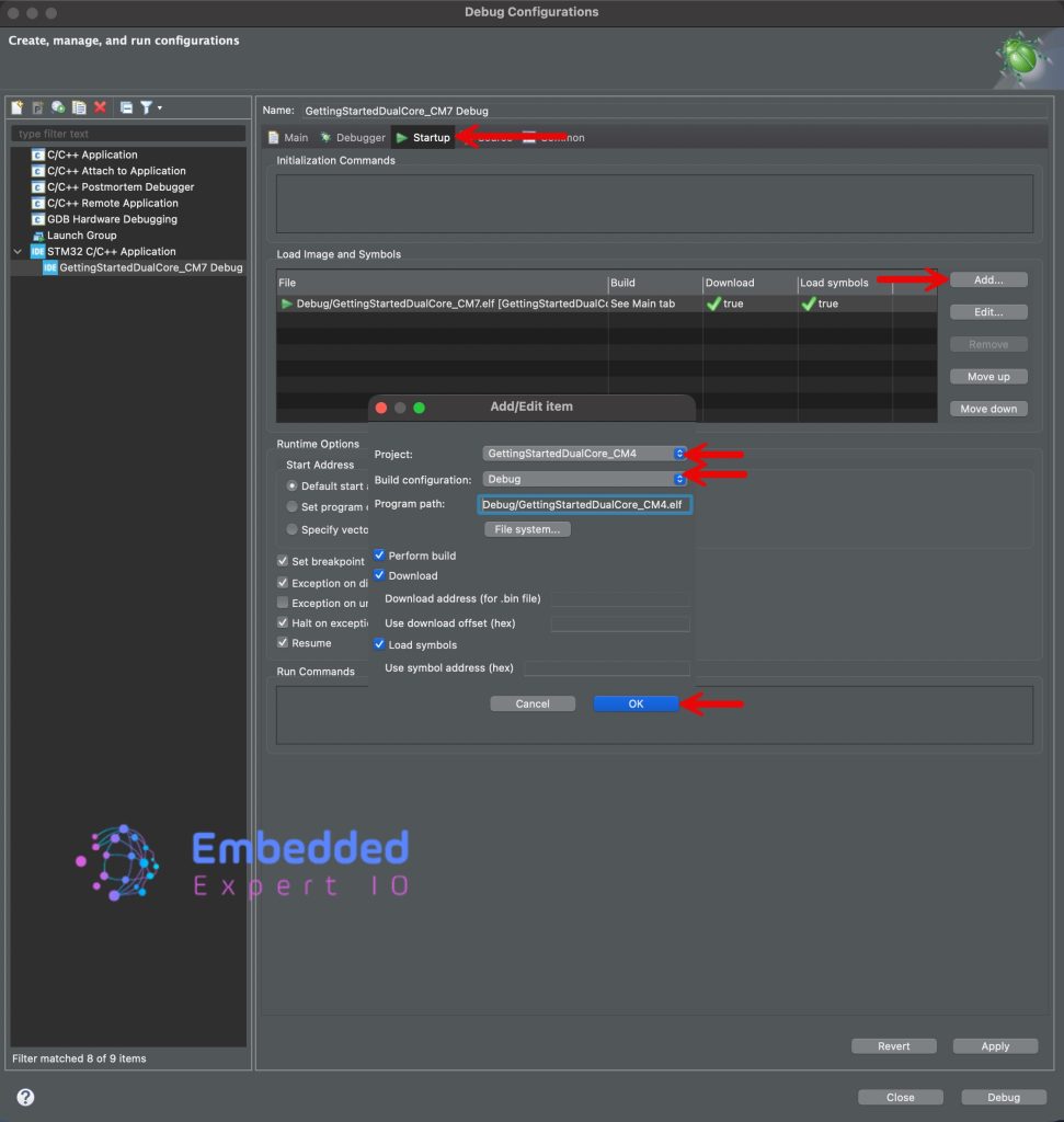 Since each project is separated, we can configure the debugger to flash CM4 through CM7.