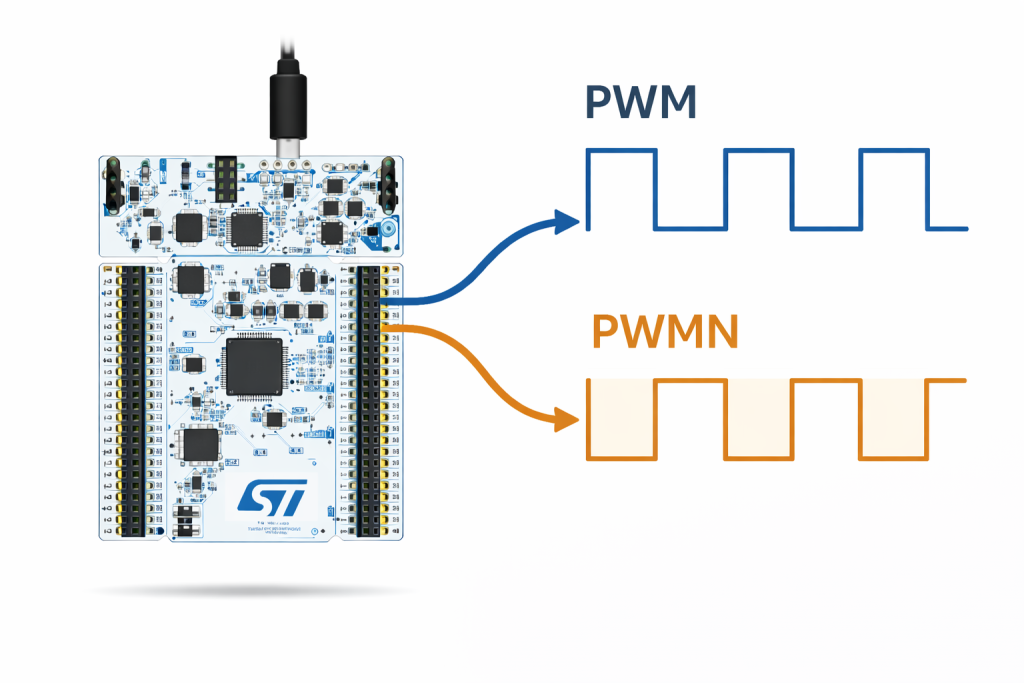 In STM32 microcontrollers, TIM1 is an advanced-control timer capable of generating complementary PWM outputs (PWM and PWMN) with high precision. These signals are widely used to drive half-bridge or full-bridge power stages in applications such as motor control, DC-DC converters, inverters, and industrial power electronics. A fundamental requirement in all these applications is that high-side and low-side switches must never be on simultaneously, as this condition can create a short-circuit path directly across the supply rail. This potentially catastrophic condition is referred to as shoot-through. Even very short overlaps of a few nanoseconds at high voltages or currents can result in MOSFET/IGBT damage, excessive heating, voltage spikes, or electromagnetic interference (EMI).