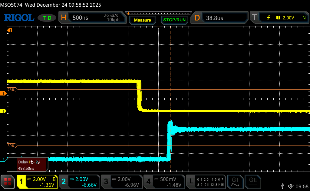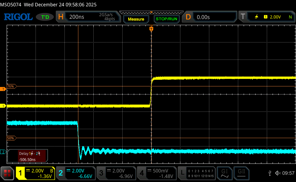 This confirms that the hardware dead‑time generator is functioning as expected and ensures safe switching transitions.