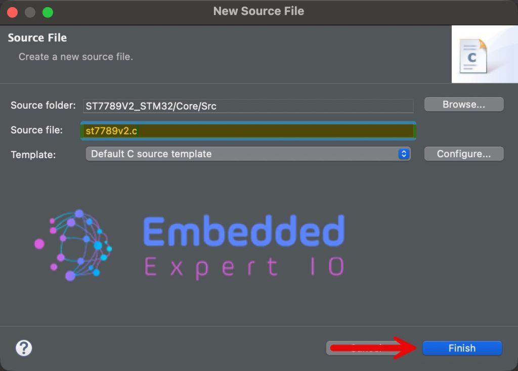 Give a name for the source file, we shall name it as st7789v2.c as following: