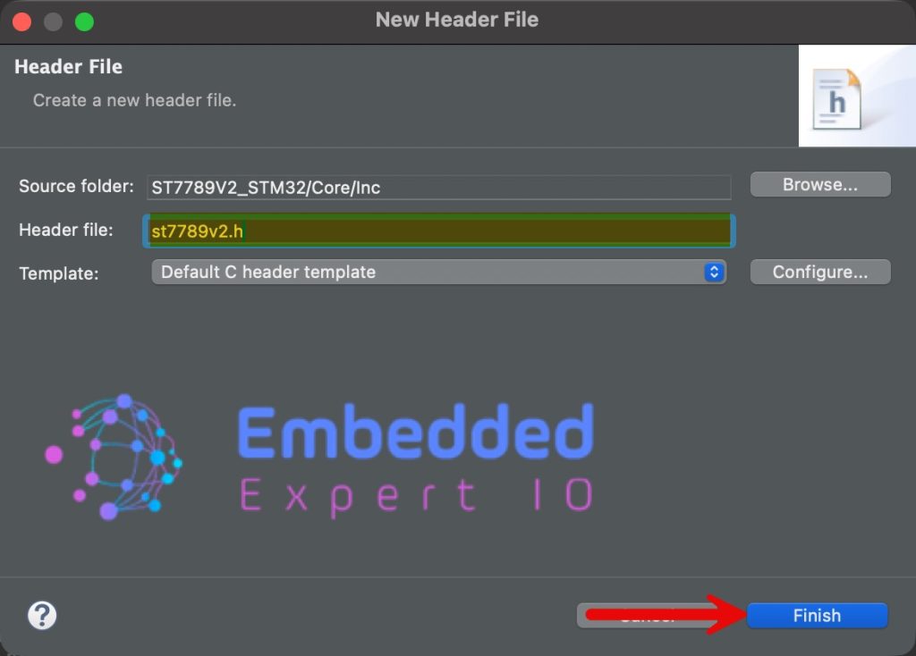 n similar manner, right click on Inc folder and add new header file with name of st7789v2.h.