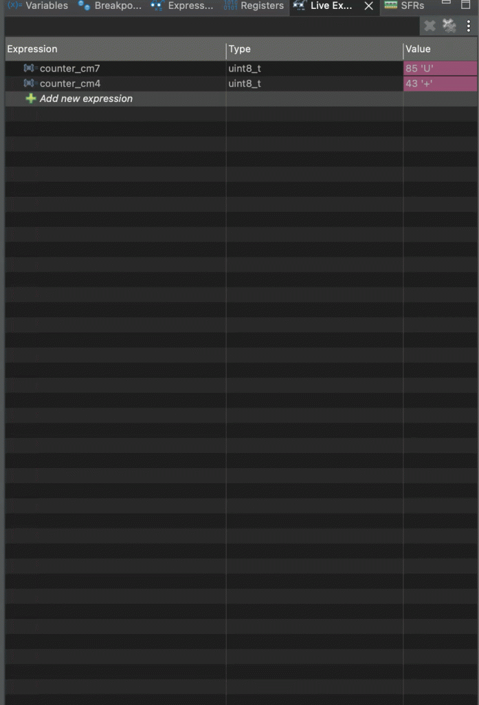 In this part, we shall add variables for both core to observer them in the live expression window of STM32CubeIDE.