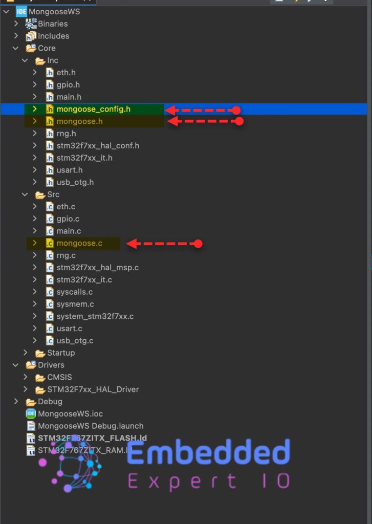 Also, copy the content of mongoose.h file from this github repository to mongoose.h in STM32CubeIDE.