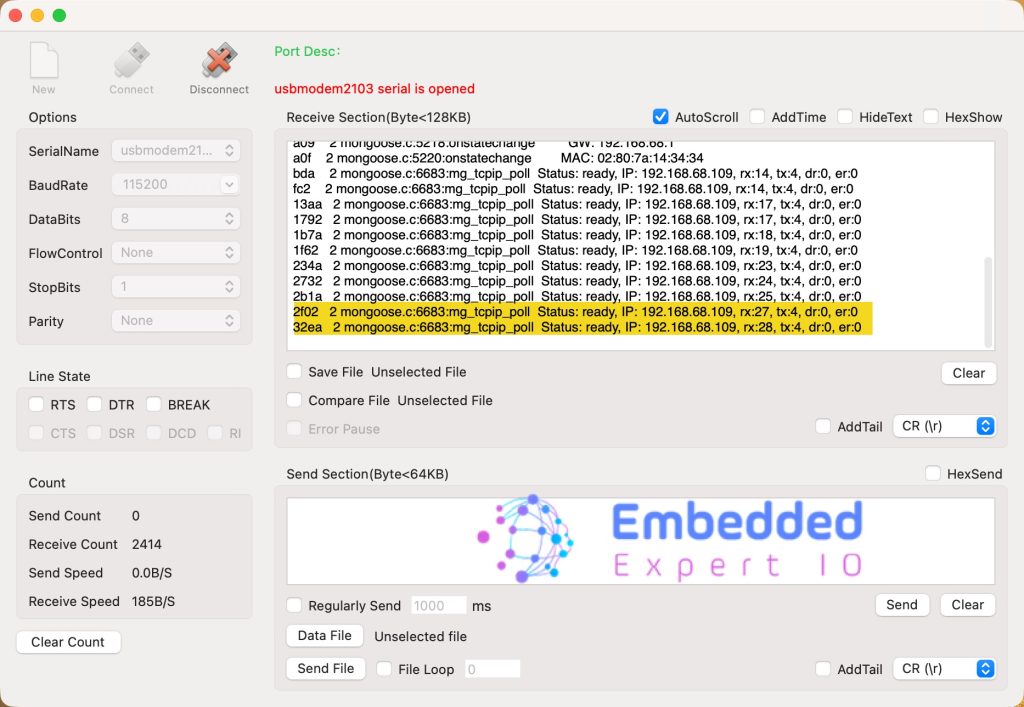 In this second part of the guide, we integrate the Mongoose source and header files into the STM32 project and walk through the required configuration steps for a successful build. We then bring up the Ethernet interface and verify basic network functionality by performing a ping test to confirm reliable connectivity.