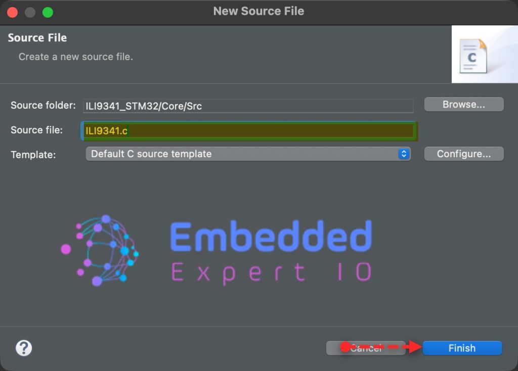 Give a name for the source file, we shall name it as ILI9341.c as following: