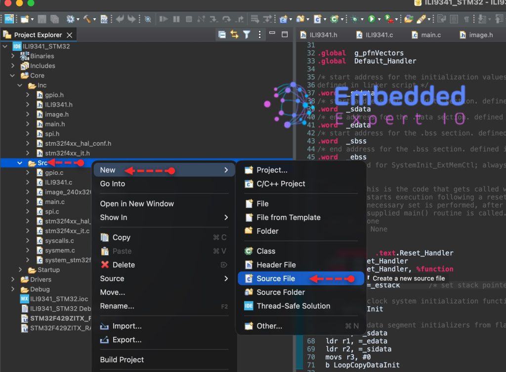 #endif /* INC_ILI9341_H_ */7. Developing the Source File: