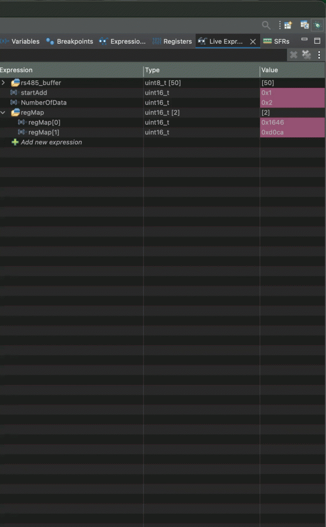 uint16_t regMap[REGMAP_SIZE]={0};Next, declare variables to hold the following: