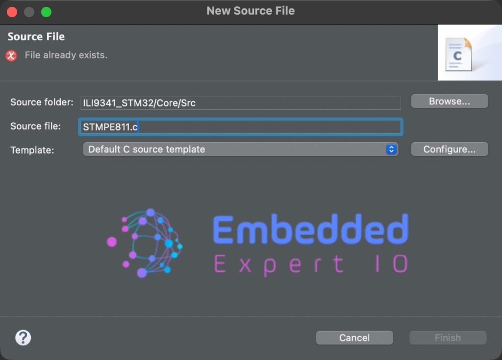 Give a name for the source file, we shall name it as STMPE811.c as following: