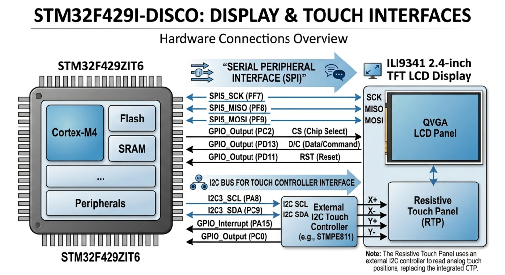 - Hardware Mapping: It switches the necessary pins from general-purpose mode to Alternate Function mode, physically connecting the resistive panel layers to the internal sensing circuitry.