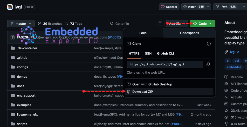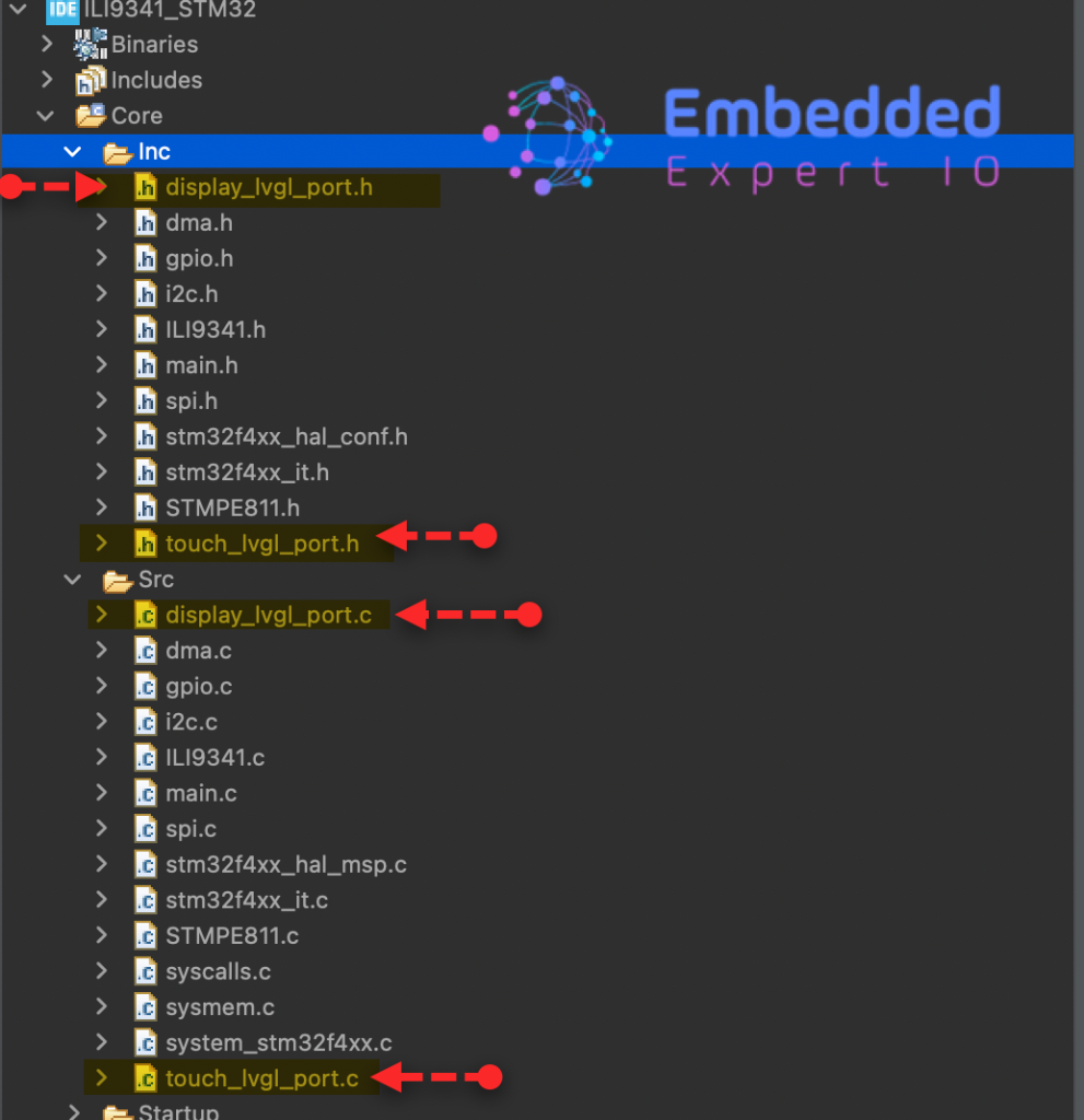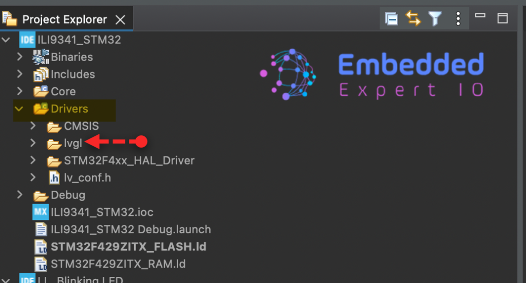 Once downloaded, extract it and rename it simply, lvgl and added to drivers folders as follows:
