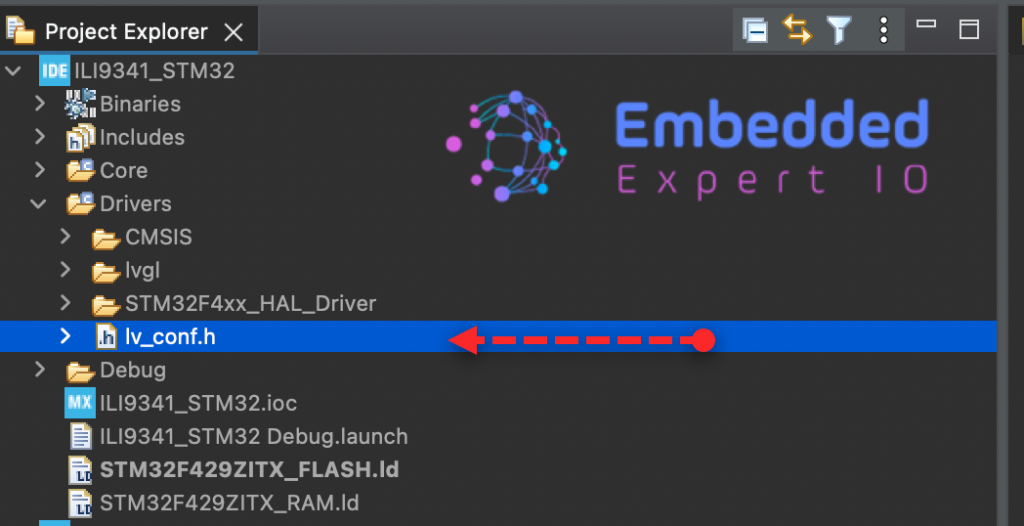 First, in driver folders, create new header file with name of lv_conf.h as follows: